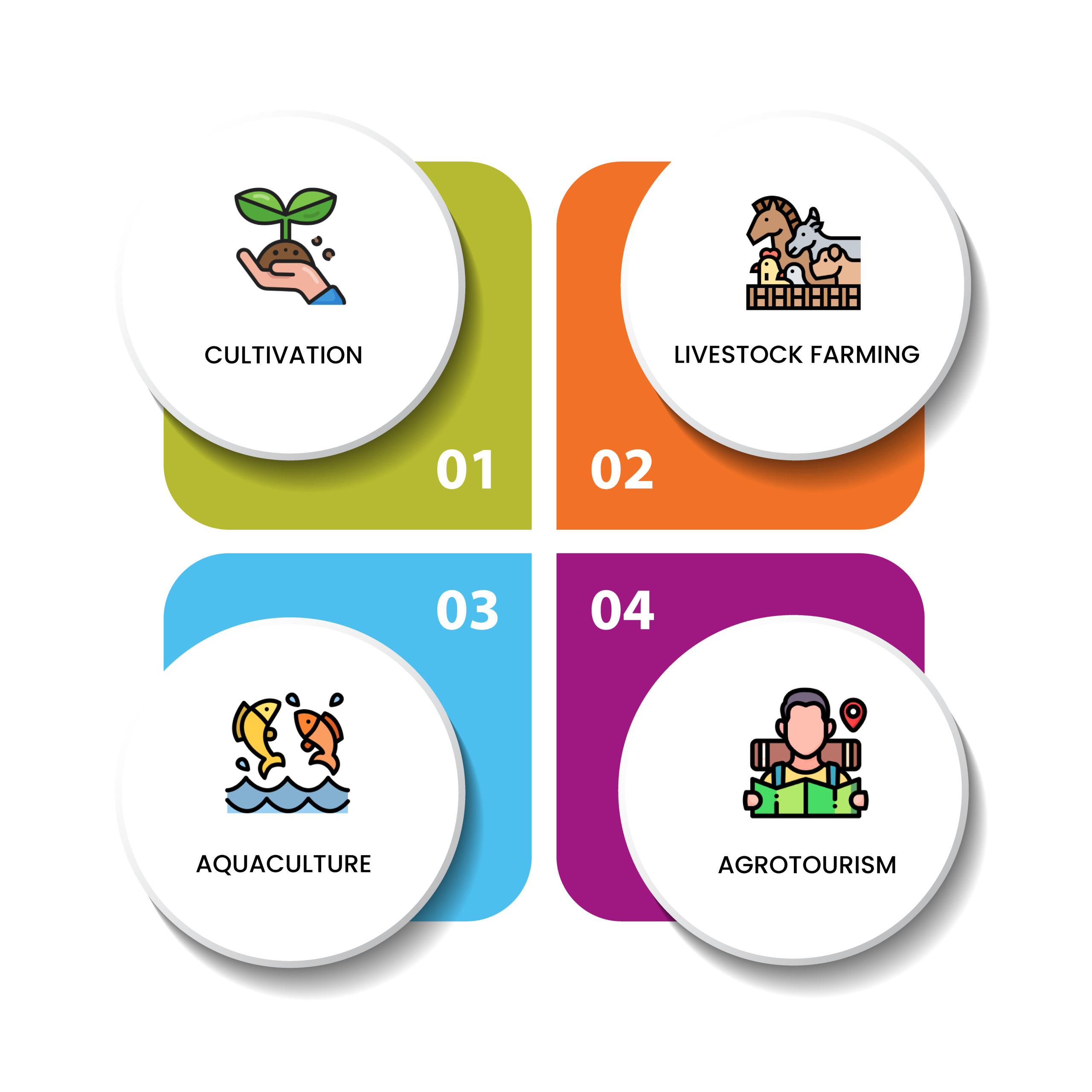 Cultivation, aquaculture, livestock farming and agrotourism are key components of the agricultural sector and contribute to economic development.